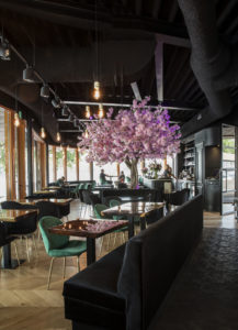 De kleur zwart van het plafond komt terug in de zwart meubels, de met zwarte stof bekleedde wanden en de doorlopende zwart houten daklijst. Het gebruik van natuurlijke materialen (zowel in het interieur als exterieur) en het uitzicht over de Sloterplas maken alles tot een bijzonder mooi geheel. Paviljoen Kaap West is op 1 juni 2020 geopend.
